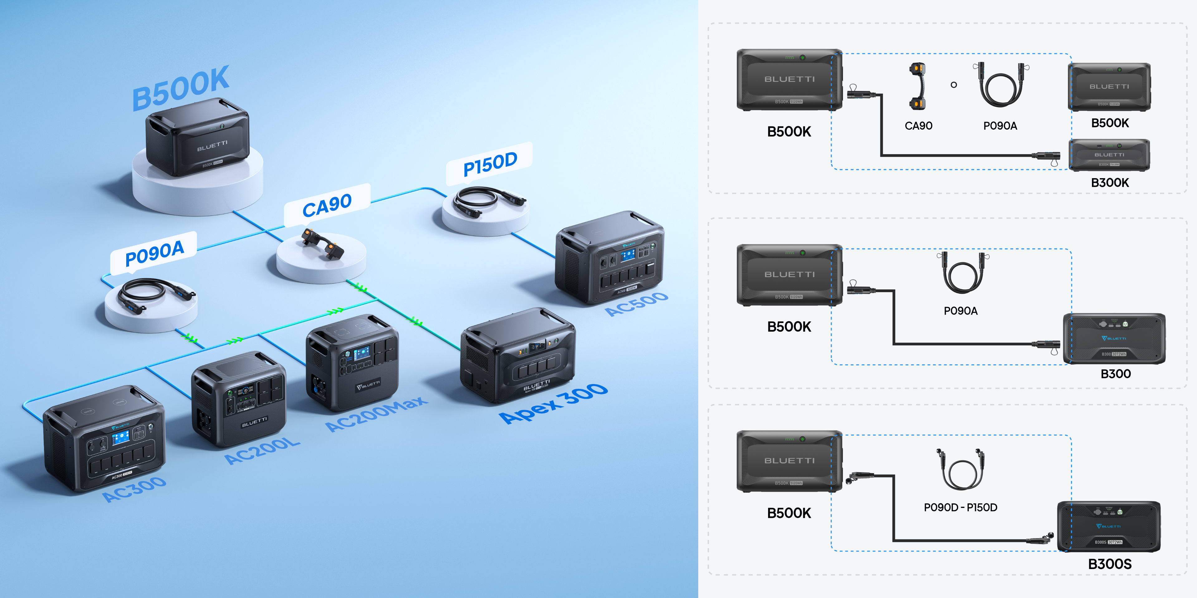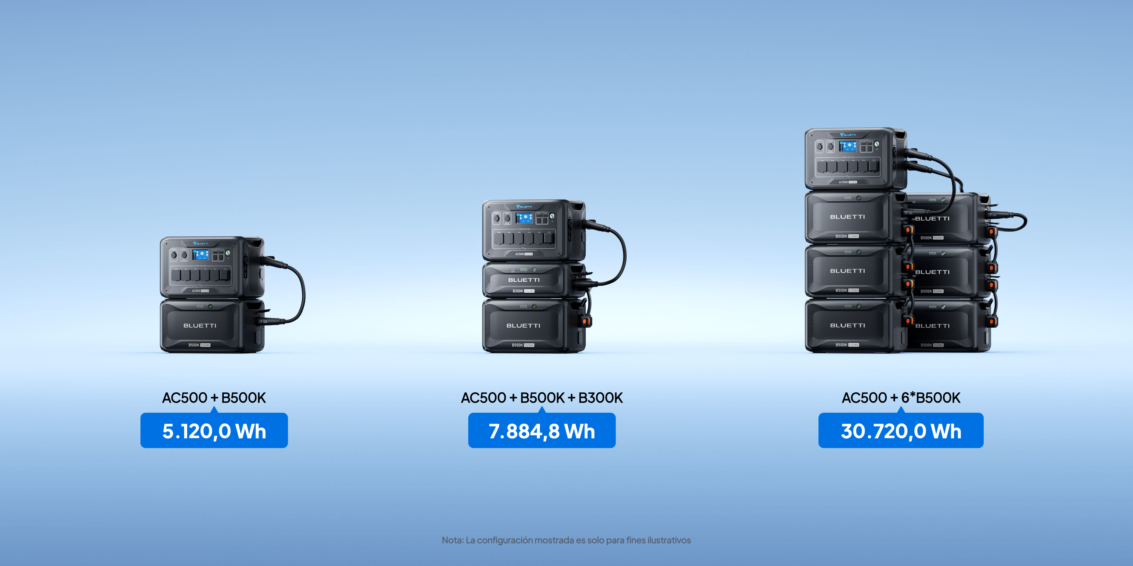 El B500K es compatible con estaciones de energía y baterías de expansión BLUETTI antiguas, actuales o futuras.