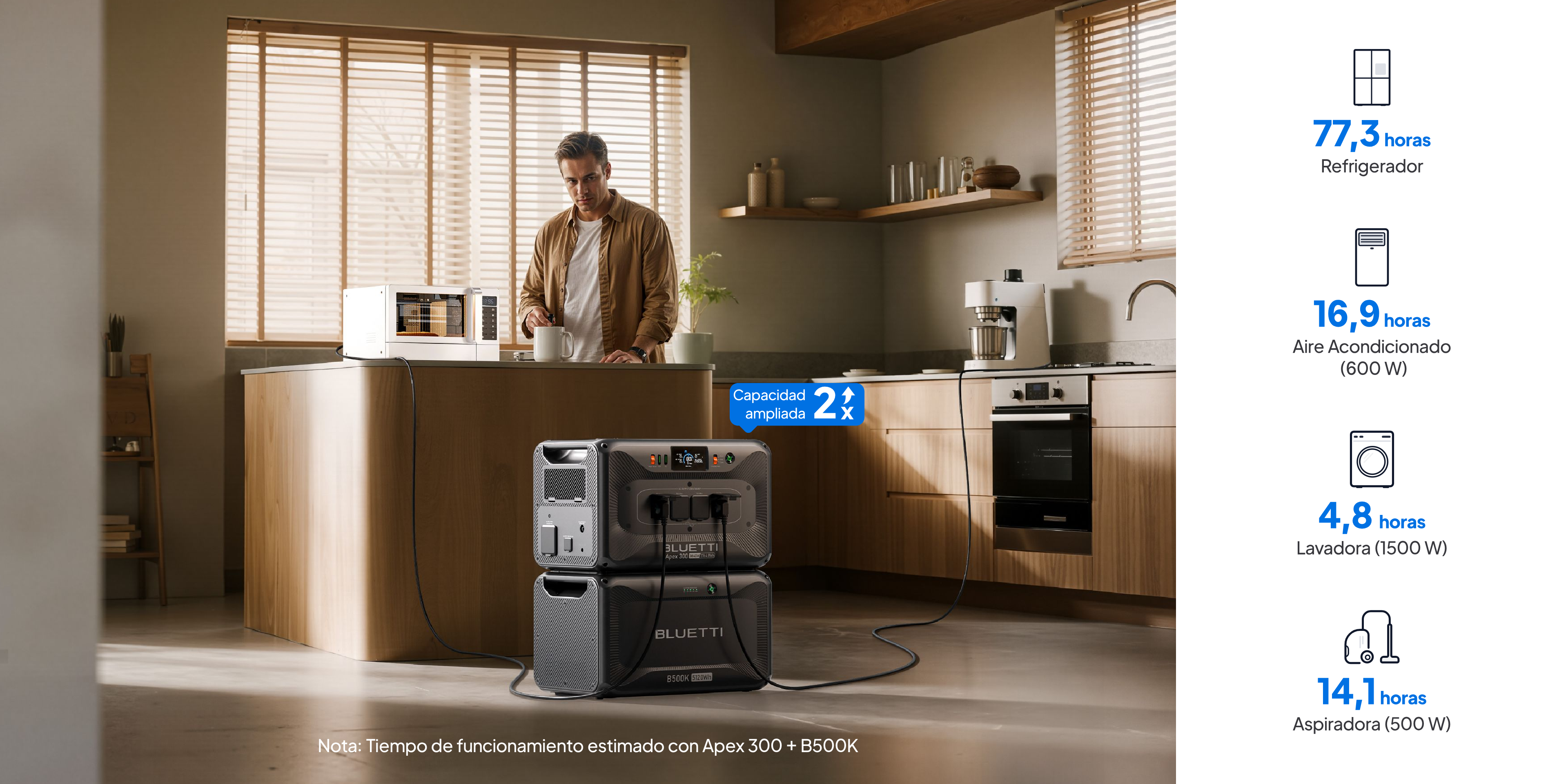 - Capacidad máxima de 16.588 Wh mientras se conecta con AC500 que se vende separadamente
